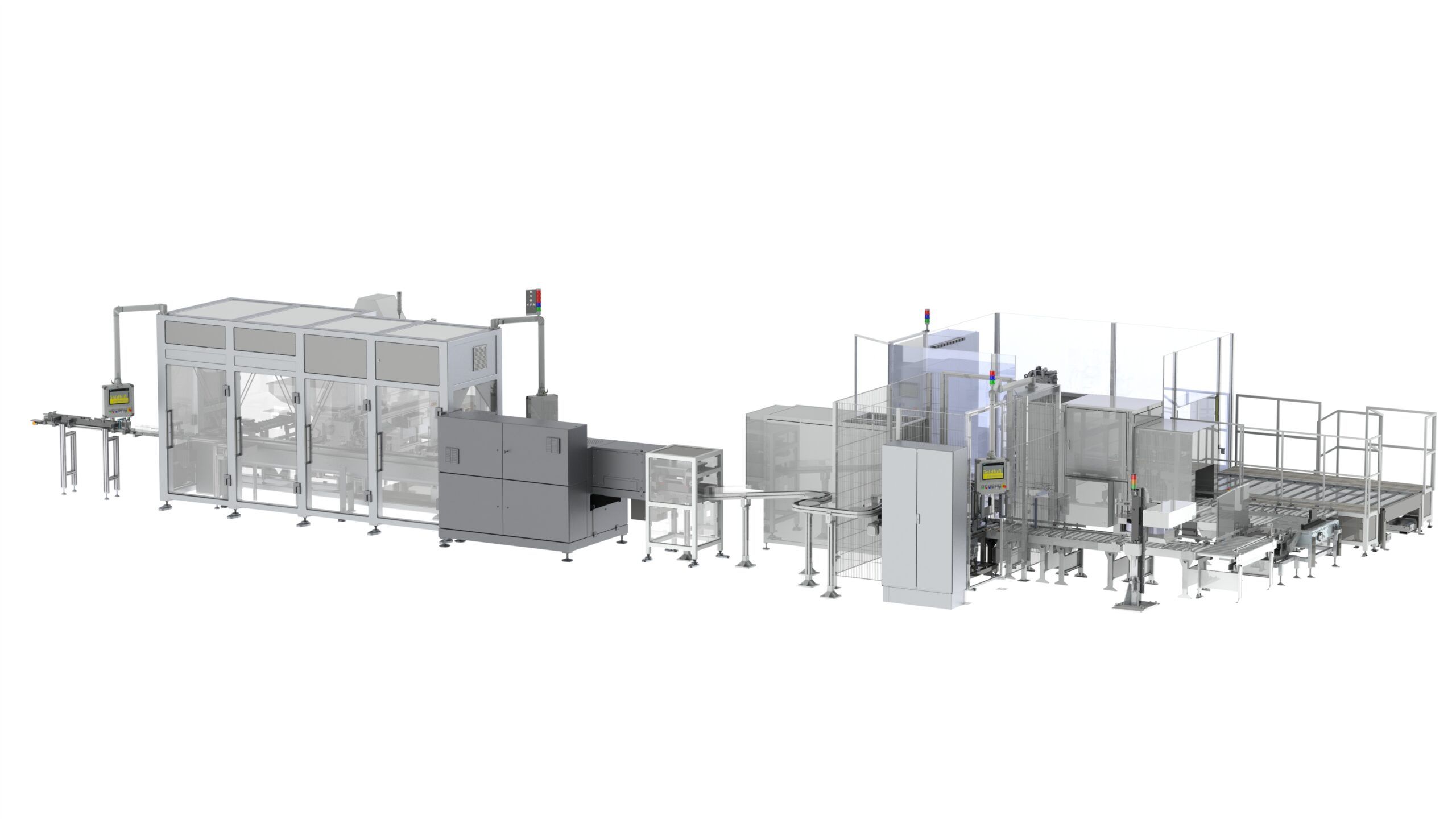 By linking Goldfuß systems to integrated other machines, we can deliver plants which depict the complete packaging process in its entirety. For this purpose, serial products that do already exist on the market are bought additionally, and they are integrated in the machine as general contractors. These can be tubular bag machines, cartoning machines, labelling machines or control scales.